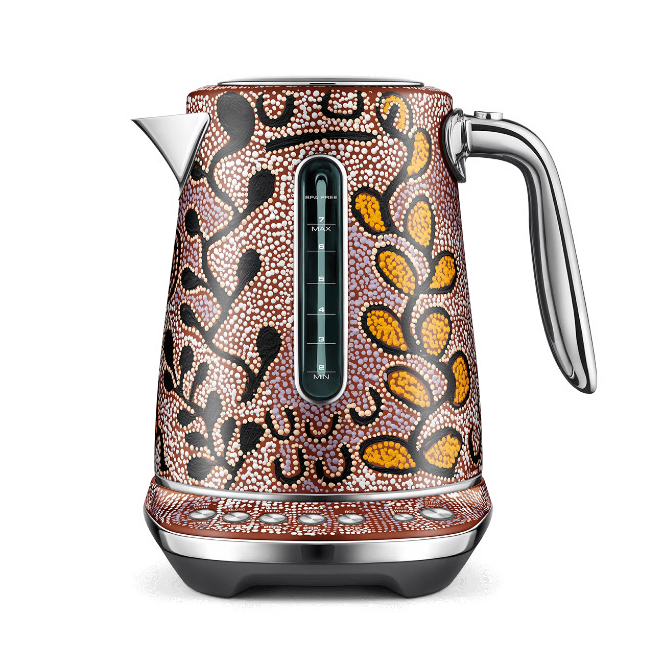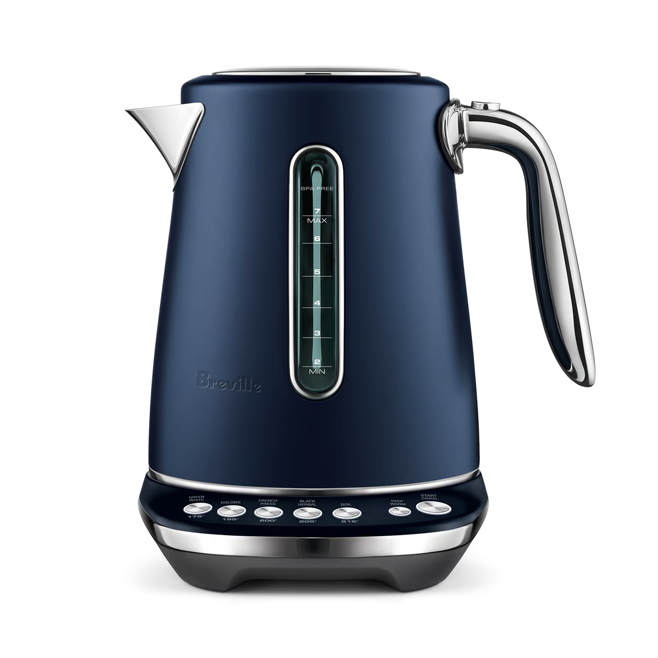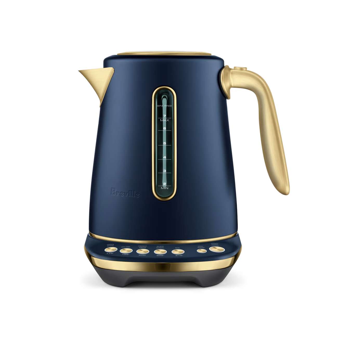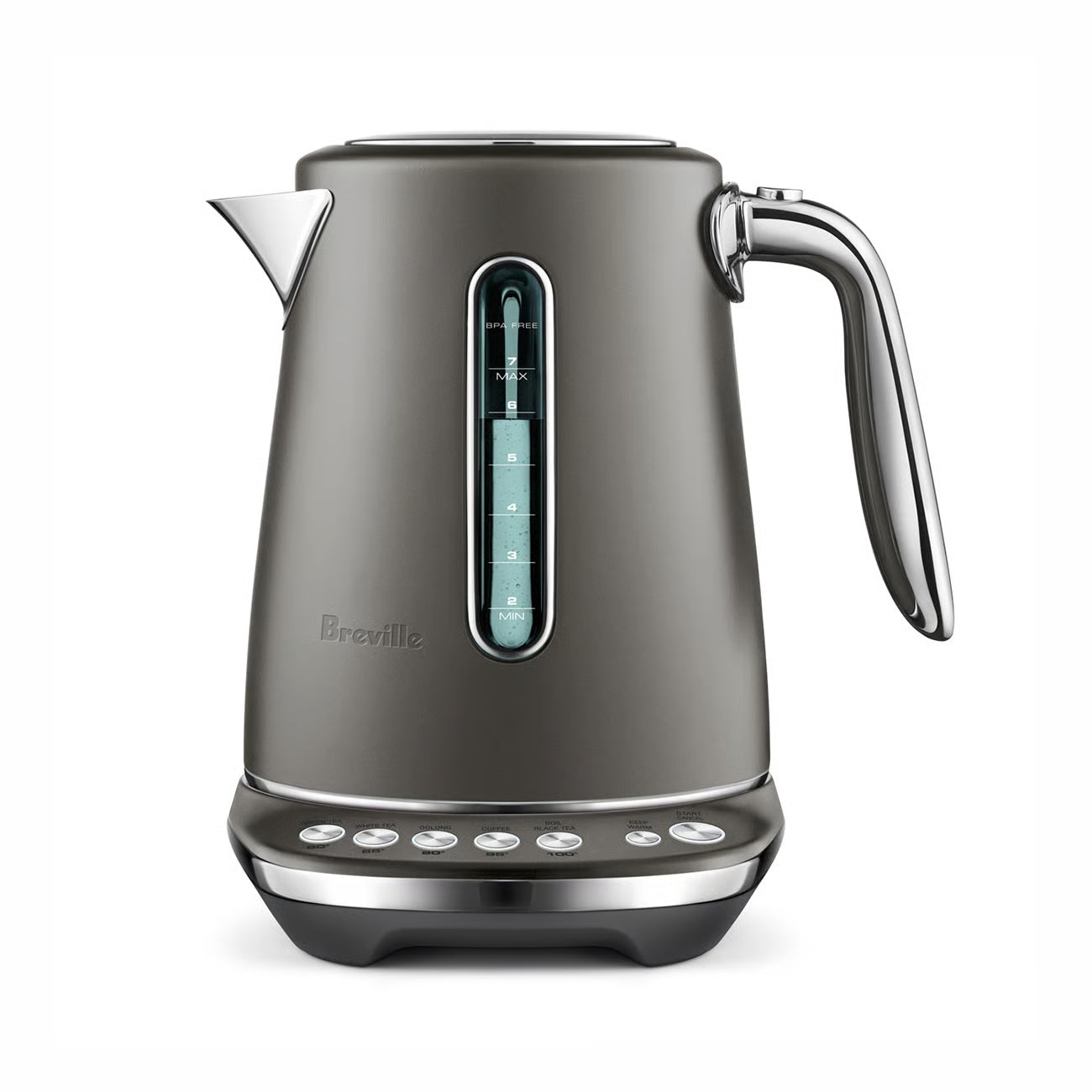This 7 cup capacity smart kettle knows the ideal temperature to bring out optimal taste and quality of your favorite tea or coffee. 5 temperature settings to brew Black, Green, White, Oolong Tea and French press coffee. Also features a soft opening lid to gently release hot steam and prevent hot water splash back.
